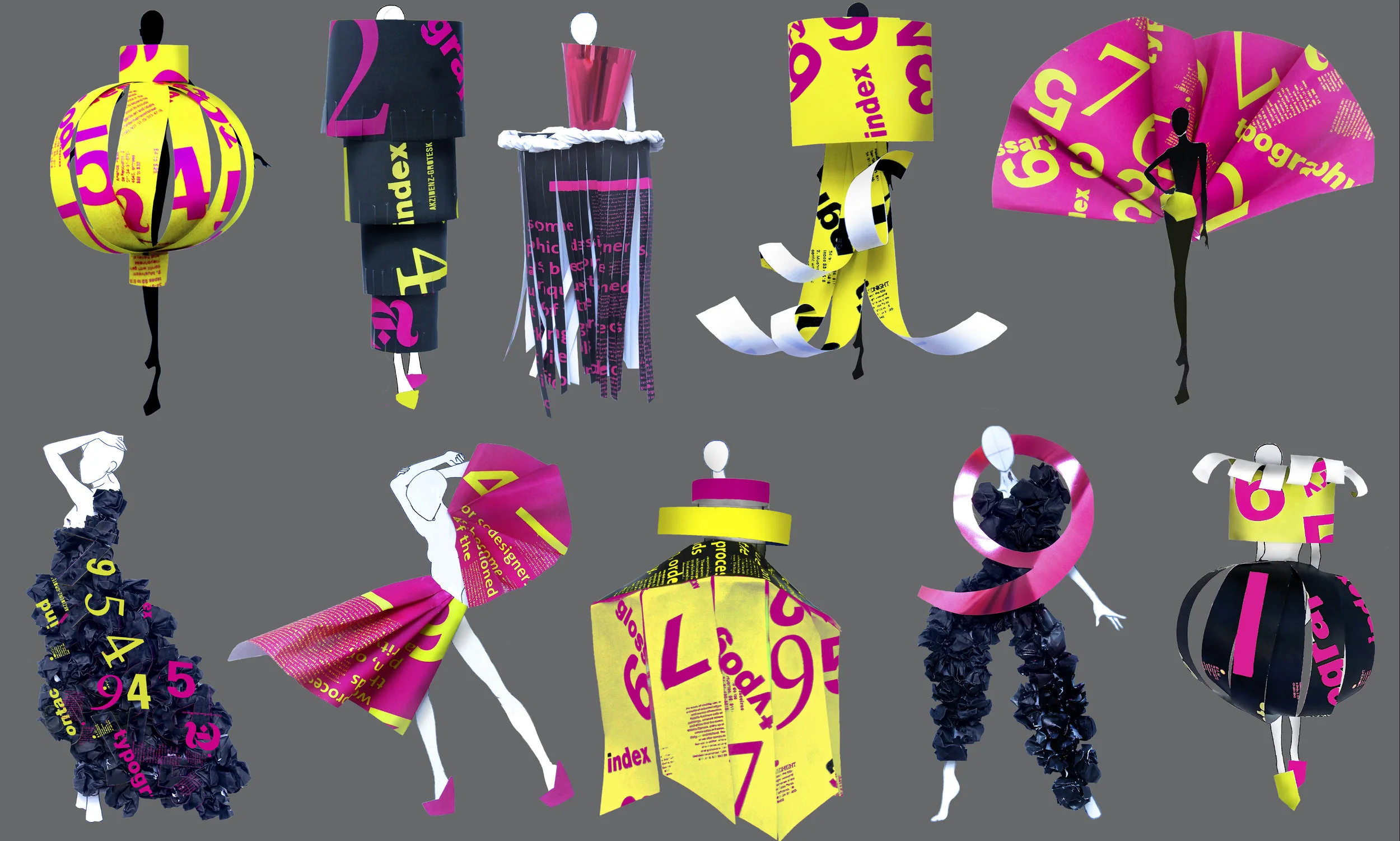 The Language of Fashion—Series of typographical fashion statements by Olga Mezhibovskaya’s students that became the foundation for the event.